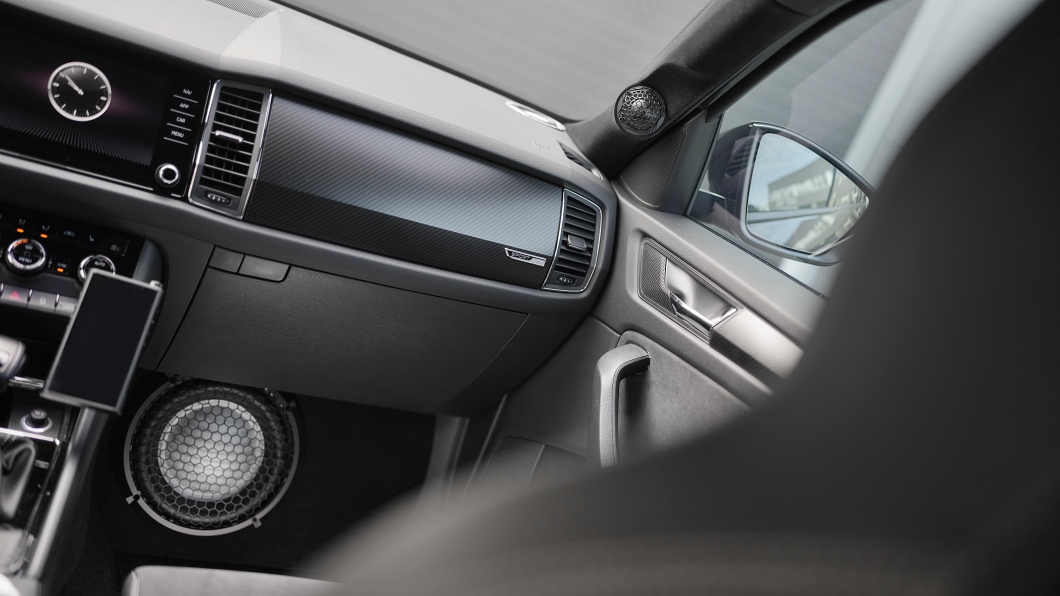 Zásadní roli hraje i akustická izolace vozu – tedy nejen tlumení dveří, ale i kompletní odhlučnění karoserie. Využití vysoce účinných materiálů nezajistí pouze nesrovnatelně vyšší akustický komfort při jízdě, ale i optimální výkon reproduktorů bez energických ztrát. Tohle vše jako zákazník možná na první pohled nevidíte – ale slyšíte to při každé jízdě.