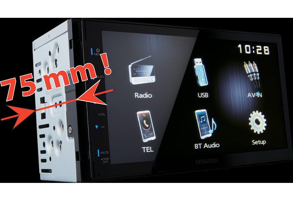 | Velikost autorádiaAutorádia se rozdělují na 2 základní velikosti, autorádia 1DIN a autorádia 2DIN. Autorádia velikosti 1DIN - přesné rozměry včetně plechového rámečku, kam se autorádio zasouvá jsou 184 x 53 mm, vnější rozměry značkového 1DIN autorádia pak jsou 188 x 59 mm. 2DIN autorádia známe z novějších vozidel, klasický příklad je VW Golf IV s navigací. Rozměry 2DIN autorádia bez plechového rámečku jsou 180 x 101 mm, venkovní rozměry značkového 2DIN autorádia jsou pak 189 x 119 mm. | 2DIN |