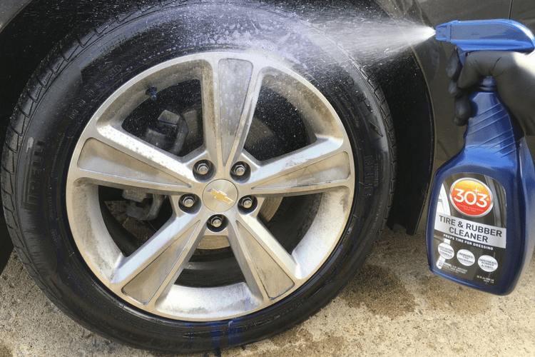 303 Rubber and Tyre Cleaner dokáže účinně vyčistit kola a pneumatiky zároveň. Lze ho však použít i na jiné gumové části na autě nebo motorce. Ideální na čištění gumových rohoží. Dokáže odstranit silniční špínu, sůl nebo tér.Jak používat 303 Rubber and Tyre Cleaner 946 ml
