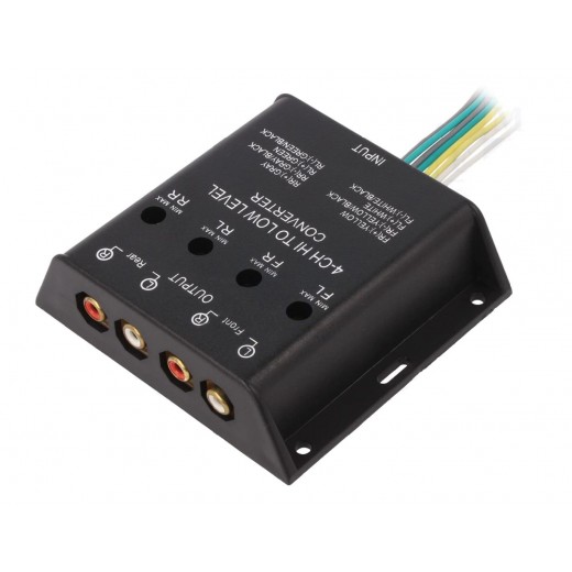 - Při napojení na reproduktorové výstupy na autorádiu snižuje úroveň signálu na LOW