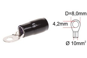 сребристо кабелно око за кабел 10 mm² черна изолация, 4,2 mm