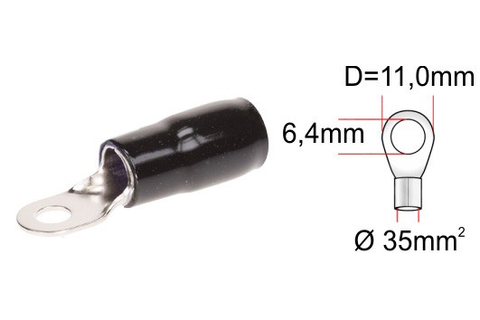 кабелно ухо сребристо за кабел 35 mm², черна изолация, отвор 6,4 mm