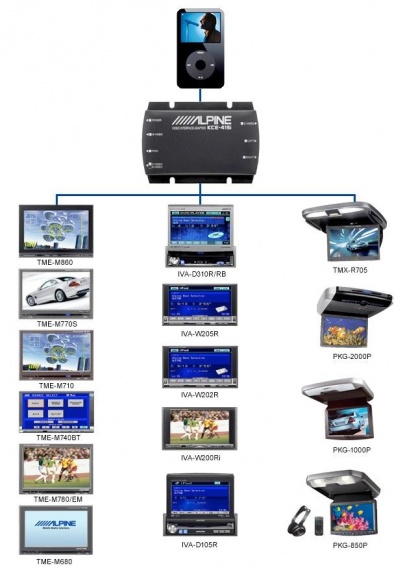 - Управление на основните функции на iPod (Възпроизвеждане/Пауза, Напред/Назад) директно от мултимедийната станция или таванния монитор, когато видеофайловете са в плейлисти