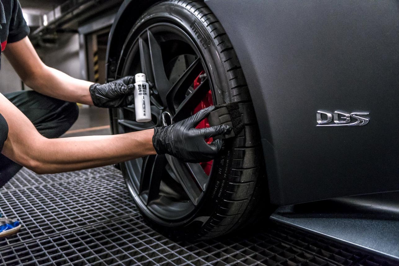 - С помощта на оформения апликатор го притиснете към страничната стена на гумата и при нанасяне премествайте апликатора с надлъжно движение.