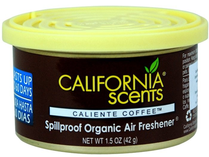Оригинален освежител за въздух с твърд пълнеж в практична малка метална кутийка, която бързо ароматизира вашия автомобил, апартамент или офис. Кутийката включва черен пластмасов капак с въртящ се регулатор, чрез който можете да променяте интензивността на аромата. Забравете освежителите и ароматите за автомобили, които губят интензивността си след само няколко дни. Луксозните, чувствените и интензивни аромати California Scents са тук, за да ви покажат какво означава наистина траен и приятен аромат в автомобила. Всяка кутия Car Scents® съдържа три блока пресована ленена тъкан, напоена с парфюм. Поради твърдата консистенция на освежителя за въздух California Scents не съществува рискът, както при подобни продукти с флакон с парфюм, от изтичане на течност, която може да повреди таблото ви.Естествени и същевременно екологични аромати за автомобила