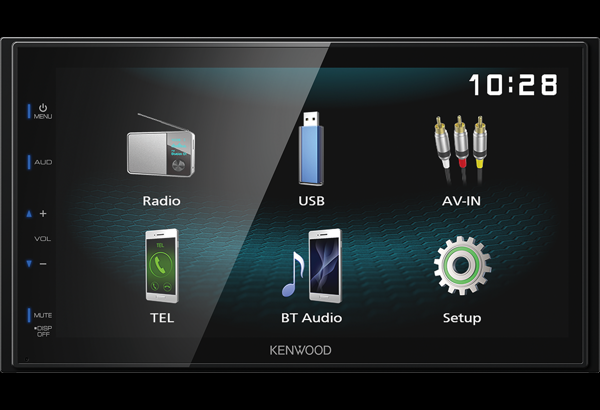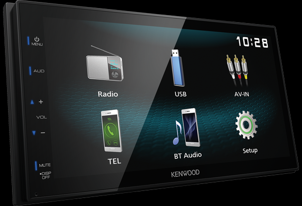 2DIN безмеханично автомобилно радио Kenwood с 6,8\" сензорен дисплей, вграден Bluetooth, USB и синя подсветка на бутоните. Прост дизайн и лесен монтаж благодарение на късото шаси.Общи спецификации на автомобилното радио Kenwood DMX-120BT