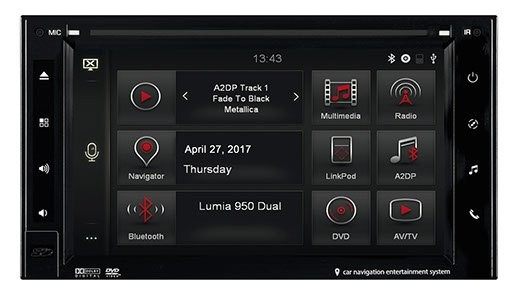 - 15,7 cm (6,2 \") сензорен дисплей с висока разделителна способност 800 x 480 пиксела, включително IR дистанционно управление
