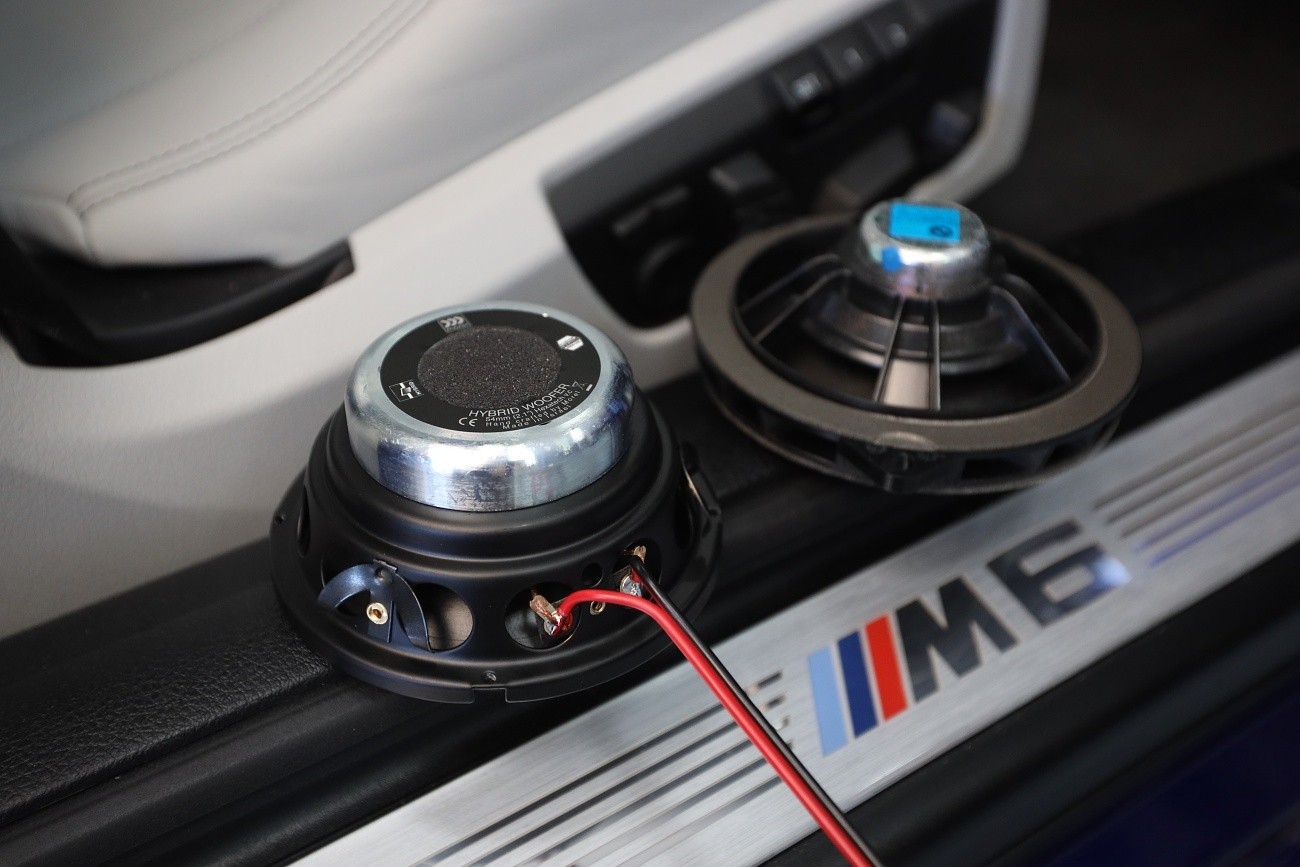Красив спортен автомобил BMW M6 с взискателен собственик и „опционално“ озвучаване BMW Hi-Fi Sound System (Option 676). Това не можеше да свърши иначе освен с инсталиране на съвсем нова озвучителна система, и в този случай много специална. Ако решите да надградите неособено успешните заводски говорители в автомобили BMW, имате избор между няколко производители, които предлагат OEM говорители за баварската марка. Говорителите имат специфично закрепване и затова не е възможно да изберете произволна марка или размер. Независимо дали изберете говорители от Match, Gladen, Eton, Steg или най-вече Audison, който предлага звучно най-качествените и най-сложни решения с възможност за пълна интеграция в заводската система, винаги ще сте ограничени от качеството на говорителите, които въпреки високото си ниво имат определени граници по отношение на звук и мощност. И ако сте истински финик и изисквате само най-доброто, практически имате единствената възможност — говорители от израелските майстори на звука - Morel. Те не произвеждат говорители, специално предназначени за BMW, но подхождат по различен, по-умен начин. Предлагат класически компонентни говорители без монтажни скоби, които обаче можете сами да монтирате там, където е необходимо. Благодарение на тази хитрина е възможно без проблеми да се използват първокласни говорители от третата по-високостепенна моделна линия Hybrid. Говорителите Morel Hybrid 402 предлагат зашеметяващ и почти съвършен звук с детайлни високочестотни говорители, в които ще чуете всичко, което авторът на музиката е възнамерявал. Вероятно сами ще се изненадате колко е възможно да малки говорители с диаметър на среднобаса само 100 mm да произведат толкова динамичен и невероятно музикален звук. Morel просто умеят и този комплект пасна прекрасно на това BMW. Говорителите свързахме към усилвател от Mosconi, който доставя мощност и на субуферите Rockford Fosgate разположени под седалките. Резултатът е озвучаване, което по звук и мощност многократно превъзхожда опционалното оборудване от Harmann Kardon, и далеч не сме достигнали лимита на тези говорители. В тази инсталация избрахме първокласен аналогов усилвател Mosconi с използване на висококачествени пасивни кросоувъри от Morel. При активно свързване към усилвател с DSP процесор и добавяне на допълнителни говорители от серията Morel Hybrid това озвучаване лесно може да надмине и премиум системите от Bowers & Wilkins.
