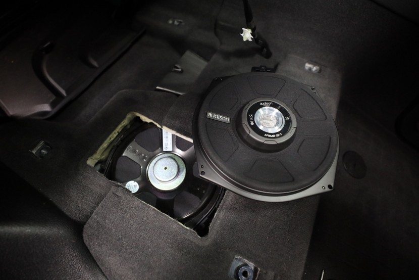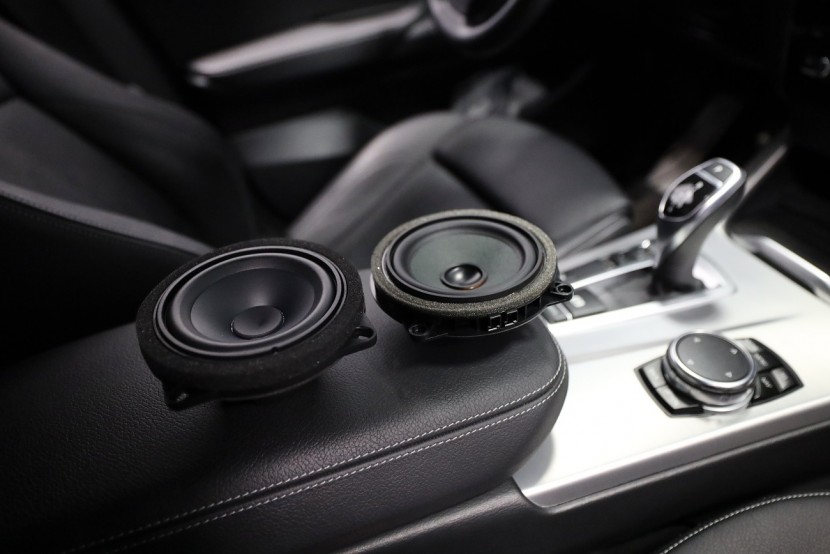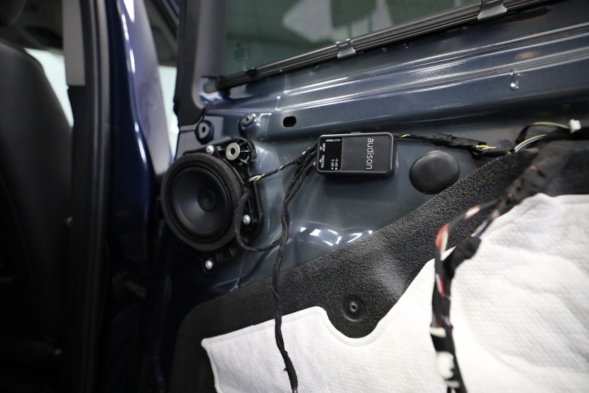 Монтаж на първокласна озвучителна система от италианския производител Audison в BMW X4, който в много отношения превъзхожда конкурентните продукти не само със своя звук, но и с инсталацията без каквато и да е намеса в оригиналната електроинсталация. Audison предлага цялостна система с кабелна инсталация, която осигурява пълна интеграция с фабричната система, без да е необходимо да режем, спояваме или прокарваме нова традиционна кабелна инсталация. Така няма риск да загубите гаранцията на новия автомобил и озвучаването може по всяко време да бъде премахнато и всичко да се върне към оригиналното състояние. Новото озвучаване е създадено по мярка за конкретния автомобил и всичко се настройва в компютър чрез софтуера на DSP процесора, където нагласяме звука на новите говорители към идеалните параметри за дадения автомобил. В този конкретен автомобил имаше "платено" озвучителен пакет Hi-Fi Sound System (S676A), който включва компонентни говорители в предните врати, компонентни говорители в задните врати, централен говорител и 200 mm субуфери под седалките. Всичко е свързано към фабричния усилвател в багажника. Качеството на озвучаването обаче далеч не отговаря на цената на автомобила и звукът е значително под средното ниво. Новият източник е 8-канален дигитален усилвател с DSP процесор Audison, който доставя мощност за всички говорители и субуфери. Основното предимство е лесната инсталация. Усилвателят благодарение на специфичен кабел го свързваме към оригиналната кабелна инсталация, която водеше до фабричния усилвател. По този начин използваме оригиналното захранване, маса и говорителни кабели без никаква промяна. Всичко отнема няколко десетки минути и усилвателят, благодарение на малките си размери, може да бъде скрит в страничната облицовка на багажника. За този монтаж избрахме по-мощната версия на отличения с награда EISA (Best Product в категория In-Car Integration) усилвател Audison AP F8.9 bit, който ще достави висока мощност на всички говорители и субуфери и ще използва максимално техния потенциал. Монтажът на компонентните говорители в предните и задните врати е лесен благодарение на идентичното закрепване и същите конектори, които имат и фабричните говорители, така че не са необходими допълнителни монтажни намеси. Достатъчно е да смените говорителите и да щракнете конектора. Същото важи и за субуферите, които са поставени под седалките. Централният говорител оставихме фабричен в интерес на бюджета и го намалихме леко. Последната и най-важна стъпка е настройката на говорителите на DSP процесора на усилвателя. В компютърната програма задаваме подредбата на говорителите, кросоувърите, филтрите, времевите корекции според позиционирането на говорителите и детайлен еквалайзер. Резултатът е висококачествен звук, настроен специално за дадения автомобил, който по качество и мощ значително превъзхожда дори допълнителното озвучаване от по-висок клас Harmann Kardon.