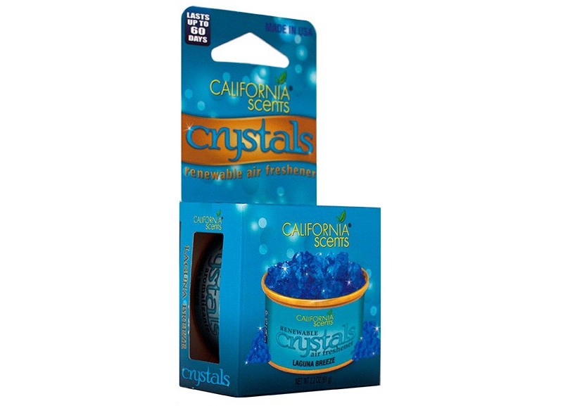 California Scents Crystals са метални кутии, съдържащи гел кристали, напоени с оригинално парфюмно масло. Идеални за употреба не само в дома, но и в апартамента или в офиса. Тези луксозни кристали ще ароматизират интериора с пленителен аромат до 60 дни! Всеки аромат от серията Crystals предлага и специфичен цвят на кристалите. Искате да превърнете освежителя Crystals в ароматен декоративен елемент за вашия дом? Насипете различни видове кристали в няколко слоя в един стъклен съд и оставете в интериора да разиграят игра на цветове и аромати. Комбинирайте, експериментирайте и се наслаждавайте на спокойствието с ароматите California Scents Crystals. Какво да правите, когато ароматът престане да се усеща и кристалите изсъхнат? Имаме прост трик - залейте кристалите с гореща вода. Кристалите отново ще попият и ще възвърнат първоначалната си сила.Естествени и в същото време екологични ароматизатори за автомобила