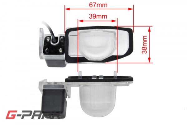 CCD паркинг камера за инсталиране в лампата за осветление на задния регистрационен номер. Камерата има прозрачен пластмасов капак, който осигурява осветяване на регистрационния номер с оригиналната крушка на автомобила.