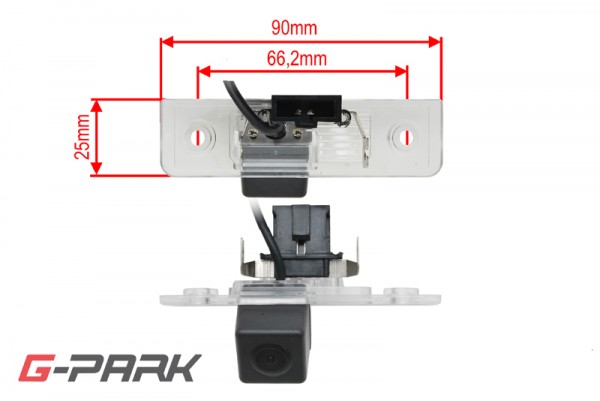 CCD паркинг камера за монтаж в лампа за осветление на задната регистрационна табела. Камерата съдържа контакти за поставяне на оригиналната крушка и конектор за свързване на захранващите проводници за осветлението на регистрационната табела.