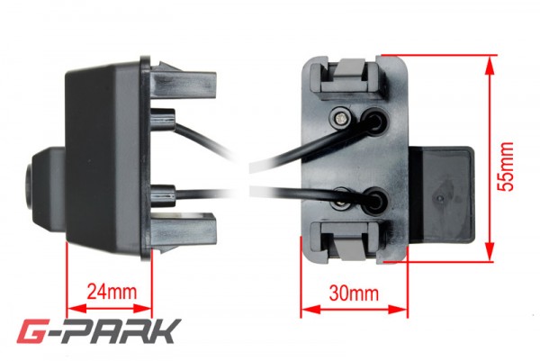 CCD паркинг камера за инсталиране на мястото за осветление на задния регистрационен номер. Камерата включва LED светлина, заместваща оригиналното осветление.