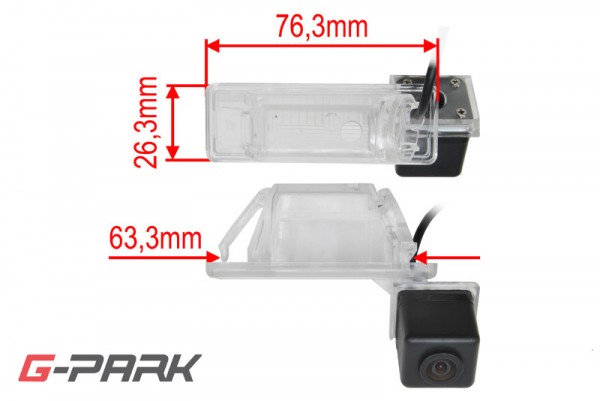 CCD паркингова камера за монтаж на мястото на осветлението на задния регистрационен номер. Камерата включва място за поставяне на цокъла с крушка от оригиналното осветление за регистрационния номер.