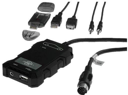 Адаптер, позволяващ свързване на USB вход и AUX вход (3,5 JACK) към OEM автомобилни радиа с управление на CD чейнджър (на мястото за свързване на CD чейнджъра). Управление на възпроизвеждането на музика от USB аксесоари чрез OEM радиото.