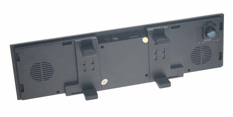 LCD монитор 4,3" с вградена DVR камера в елегантно изпълнение, предназначен за закрепване на огледалото за обратно виждане. Мониторът е оборудван с крепежи за оригиналното огледало за обратно виждане. В същото време заменя функцията на огледалото за обратно виждане. К към монитора може да се свърже произволен външен източник на композитен видео сигнал + камери.