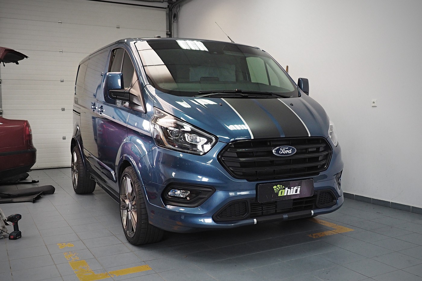 Инсталиране на ново озвучаване в автомобила Ford Custom. В шумоизолираните врати инсталирахме аудиосистема над стандартната от френския производител Focal. За максимално използване ги свързахме към двуканален усилвател Steg, който се отличава с много качествен звук и идеално пасва на новите високоговорители. Усилвателят заедно с активния субуфър Eton скрихме под седалката на пътника.