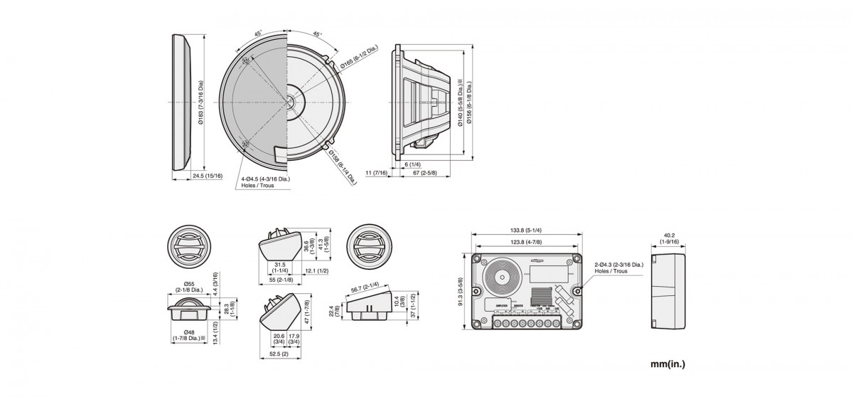 30 W RMS, 86 dB (SPL 2,83V/1m), 4 Ω, монтажна дълбочина 57,3 mm