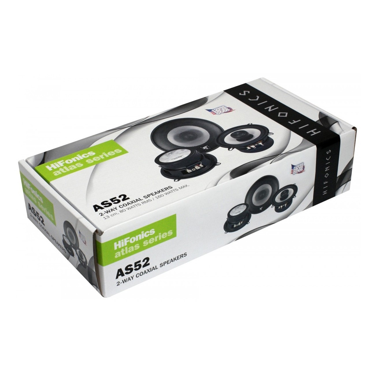 Новите висококласни говорители Atlas достигат високото техническо ниво на усилвателите HiFonics. Новата серия коаксиални говорители AS е по-достъпна, но постига първокласно качество. Стоманената кошница, навивки устойчиви на високи температури, полипропиленови мембрани с алуминиев вид и еластични бутилови окачвания гарантират перфектно и ударно възпроизвеждане на средно-ниските честоти. Копринените високочестотни говорители придават на звука точност и прецизност дори при най-високите честоти. Един от най-добре звучащите коаксиални говорители на днешния пазар!