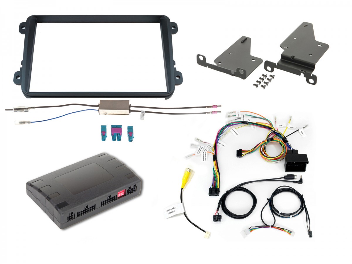 8" инсталационен комплект за автомобили VW съдържа всички части, необходими за инсталиране на навигационния модул Alpine INE-W928R във вашия автомобил. Частите, необходими за механичен монтаж, са в опаковката, както и интерфейс, който позволява управление и видимост на екрана на климатика, отоплението и парктроника. Също така съдържа интерфейс, който поддържа радио от таблото (MFD). В комплекта е включен антенен адаптер.