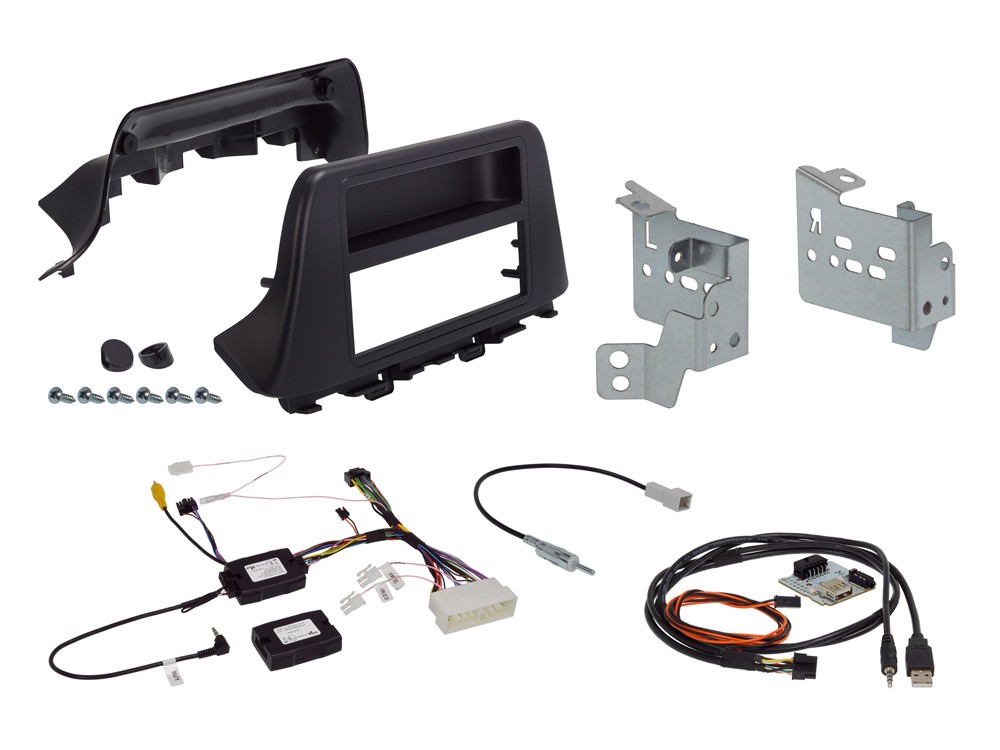 Инсталационен комплект за iLX-F903D. Съвместим с Hyundai Kona (2017 и по-нови). Включва рамка, кабели, CAN интерфейс с поддръжка SWRC, USB адаптер, антенно адаптер, задържащ интерфейс за задна камера. Цвят: черен.