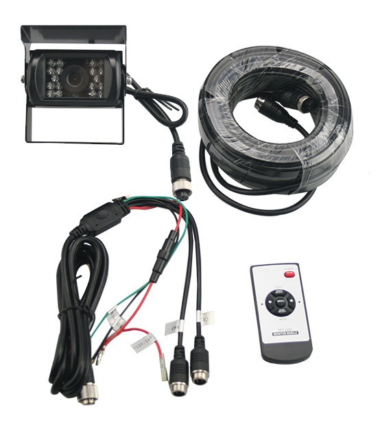 В комплекта има 7\" LCD AHD монитор + AHD 1080P камера + 15m свързващ 4-пинов кабел + дистанционно управление. AHD LCD монитор 7\" с широко зрително поле и дисплей с висока разделителна способност, с възможност да обработва AHD изображение с резолюция 1080P / 960P / 720P. AHD 1080P камера с IR подсветка, външна, предназначена главно за монтаж на товарни автомобили, автобуси, каравани или ванове. Свързване с 4-пинов кабел.