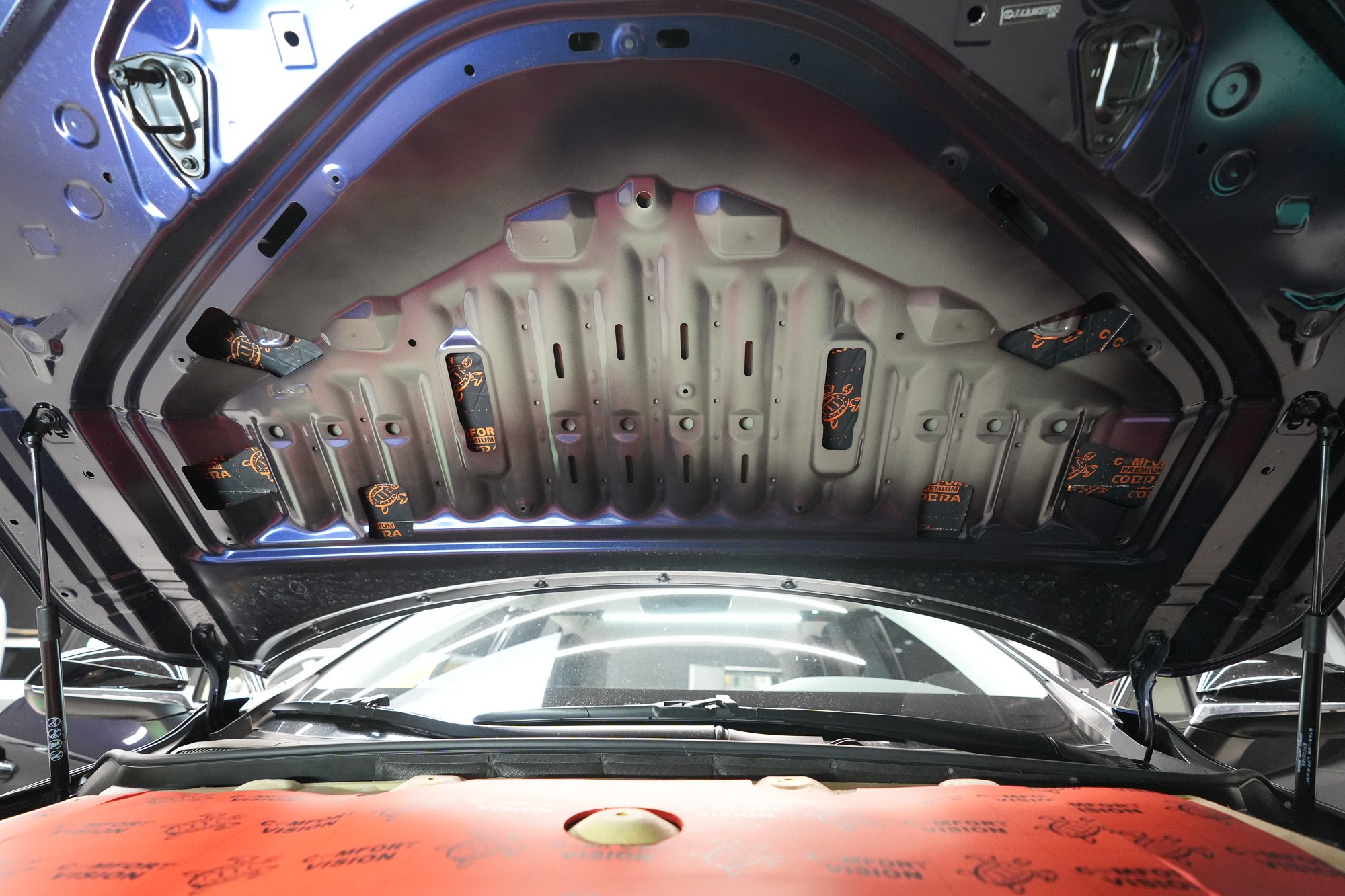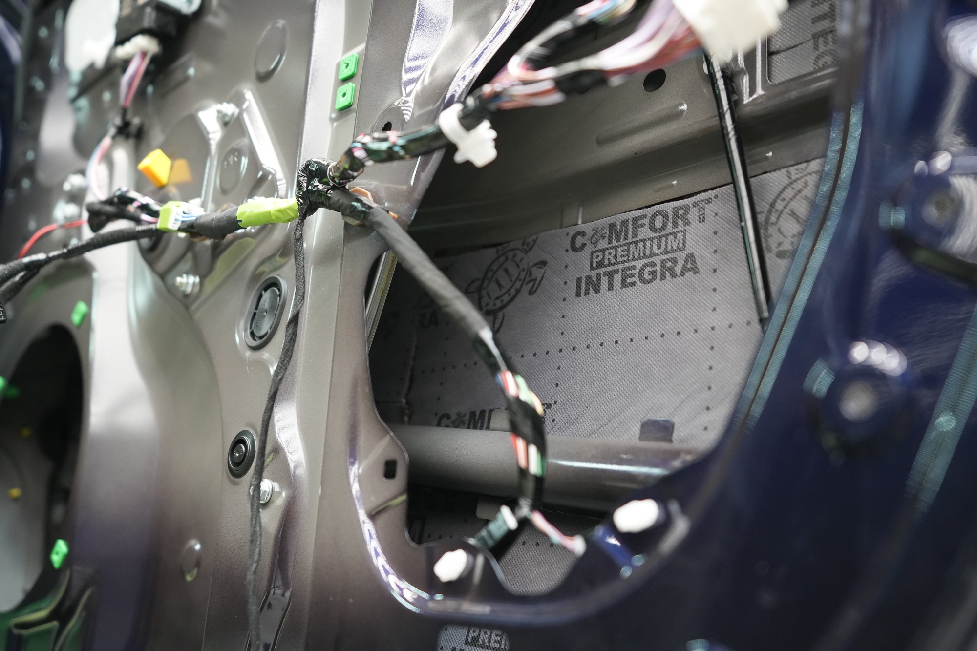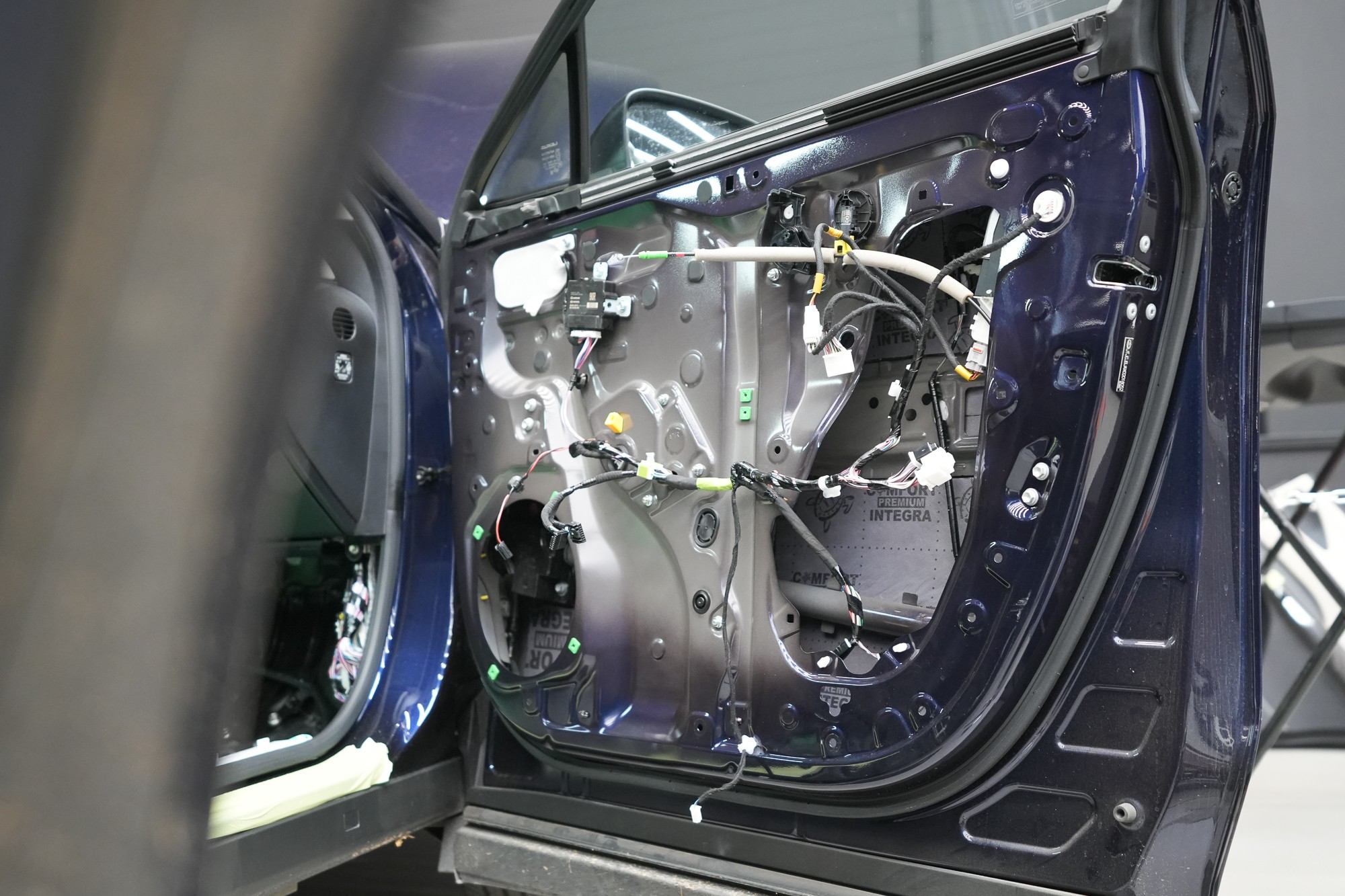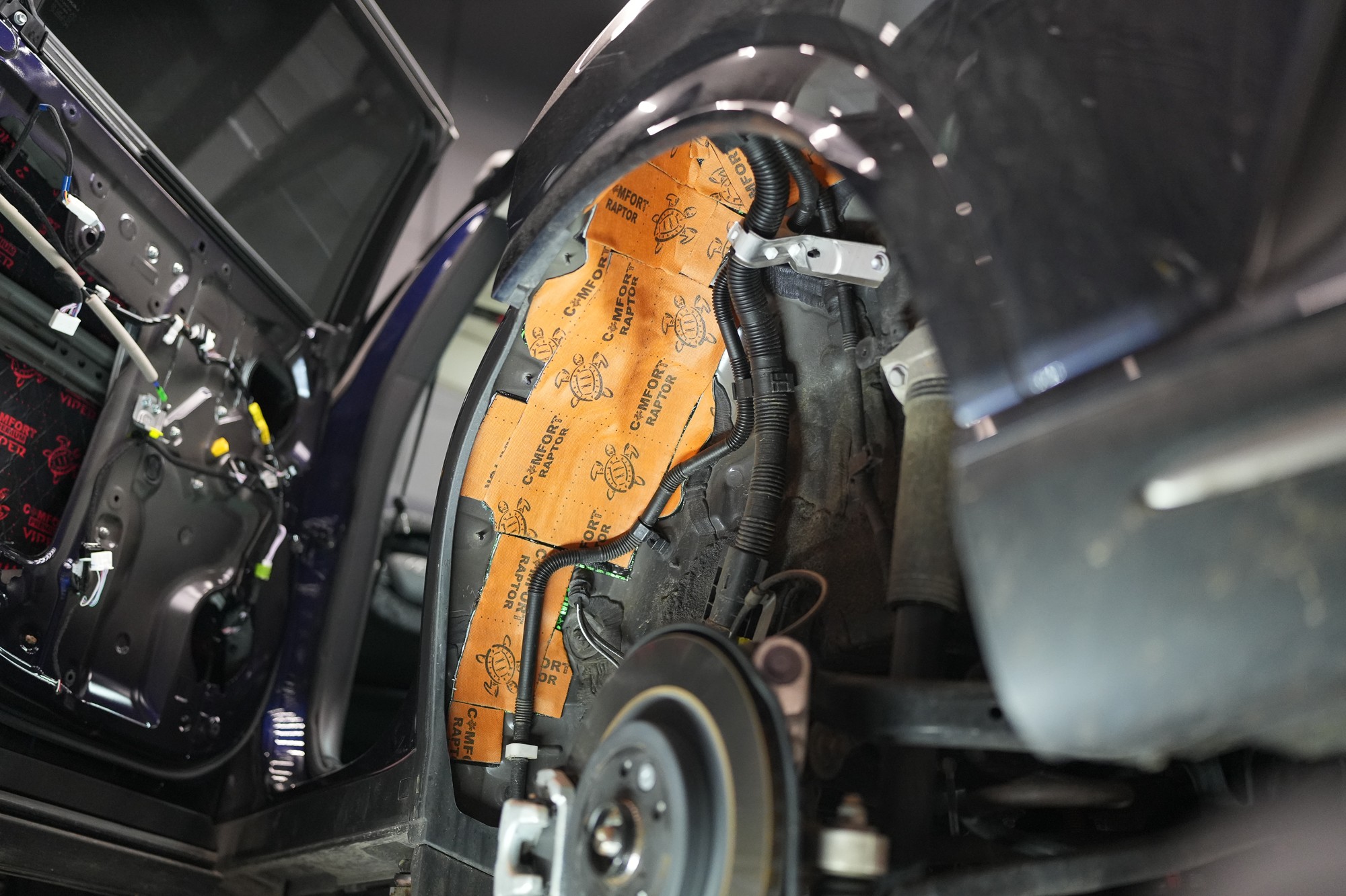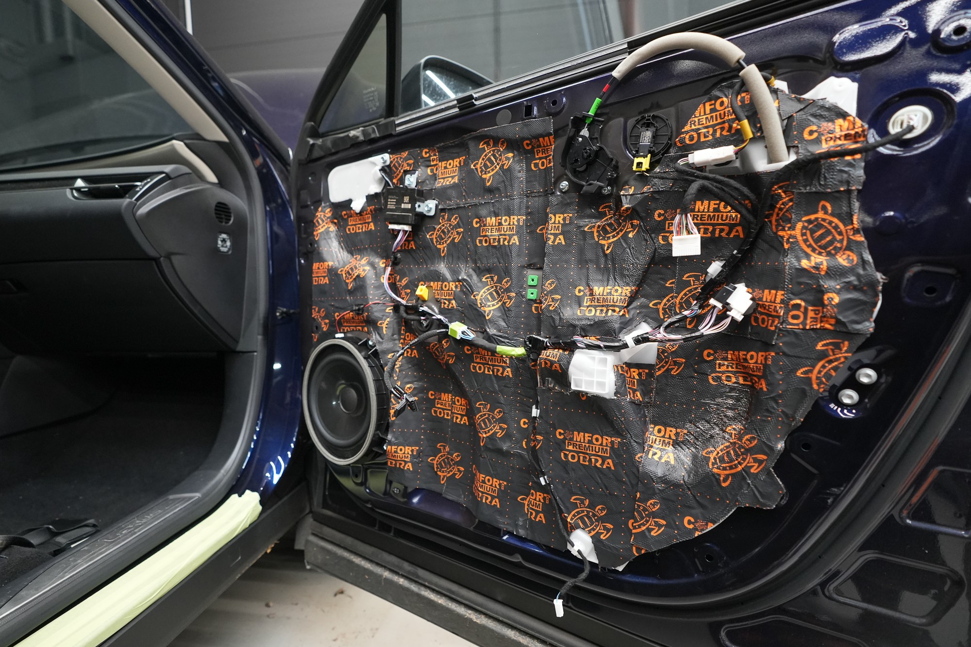 Собственикът на автомобила се реши на пълна шумоизолация в рамките на нашия пакет Expert Plus, който наскоро беше модернизиран. Ново използваме висококачествен звукоизолационен материал Comfortmat Titan, прилаган предимно на пода и арките – тоест части от каросерията, които са най-силно изложени на акустичното въздействие. Този материал може да намали шума с до 38 dB, което го поставя сред най-ефективните решения на пазара. Двуслойната конструкция, комбинираща материали от професионалната серия Expert, гарантира максимален акустичен ефект и дълготрайна издръжливост.