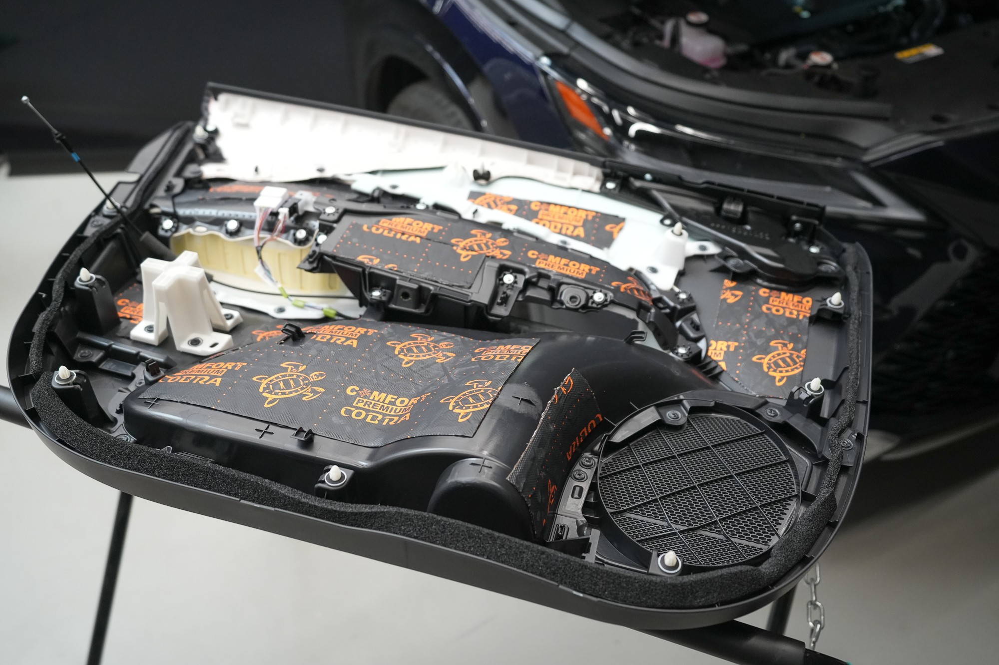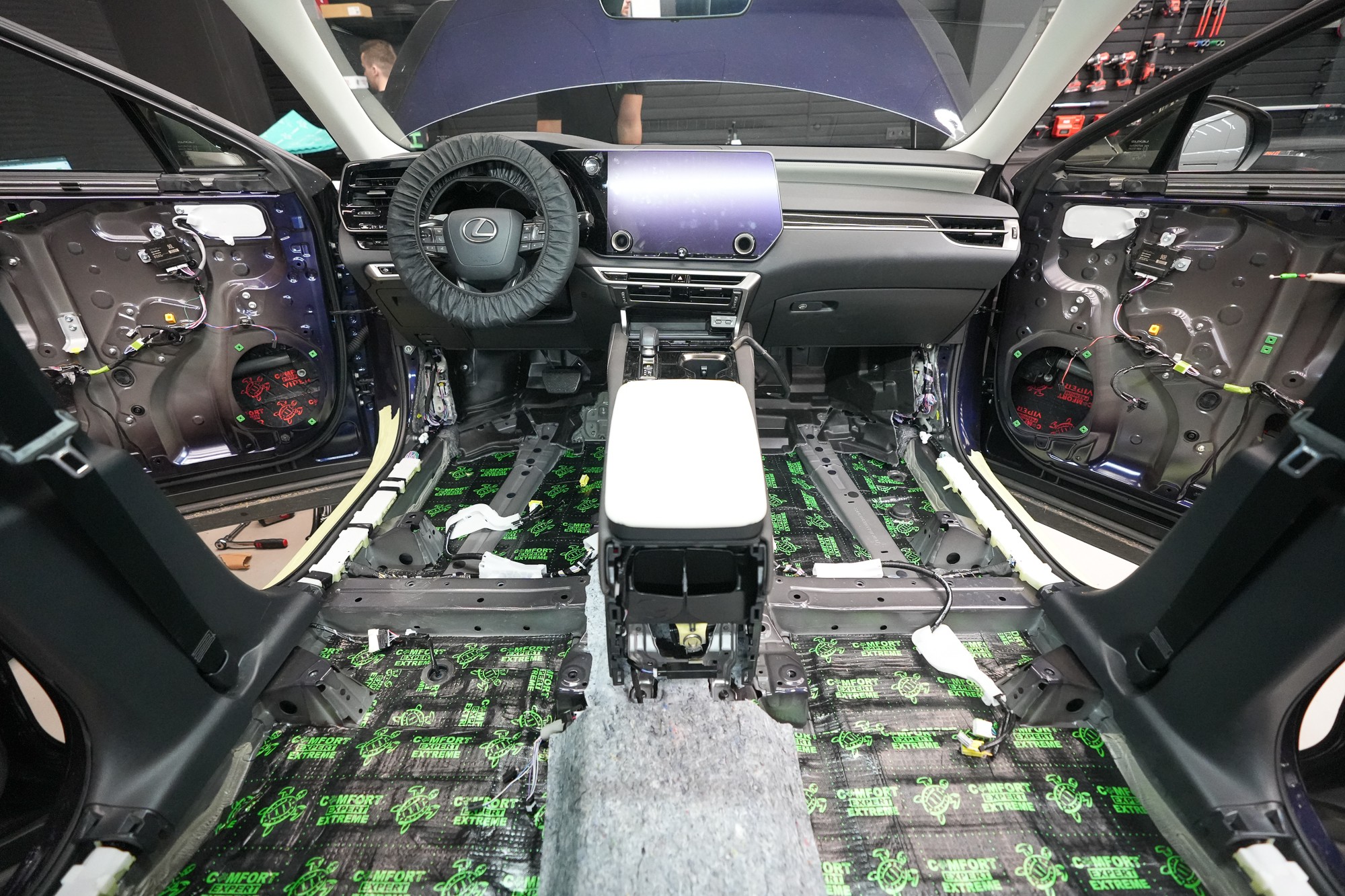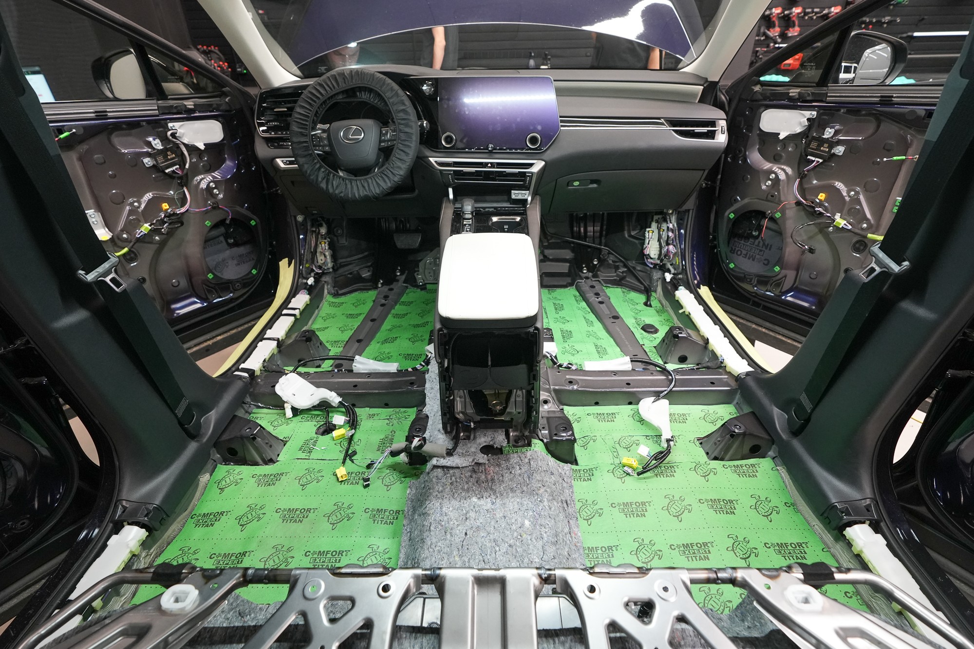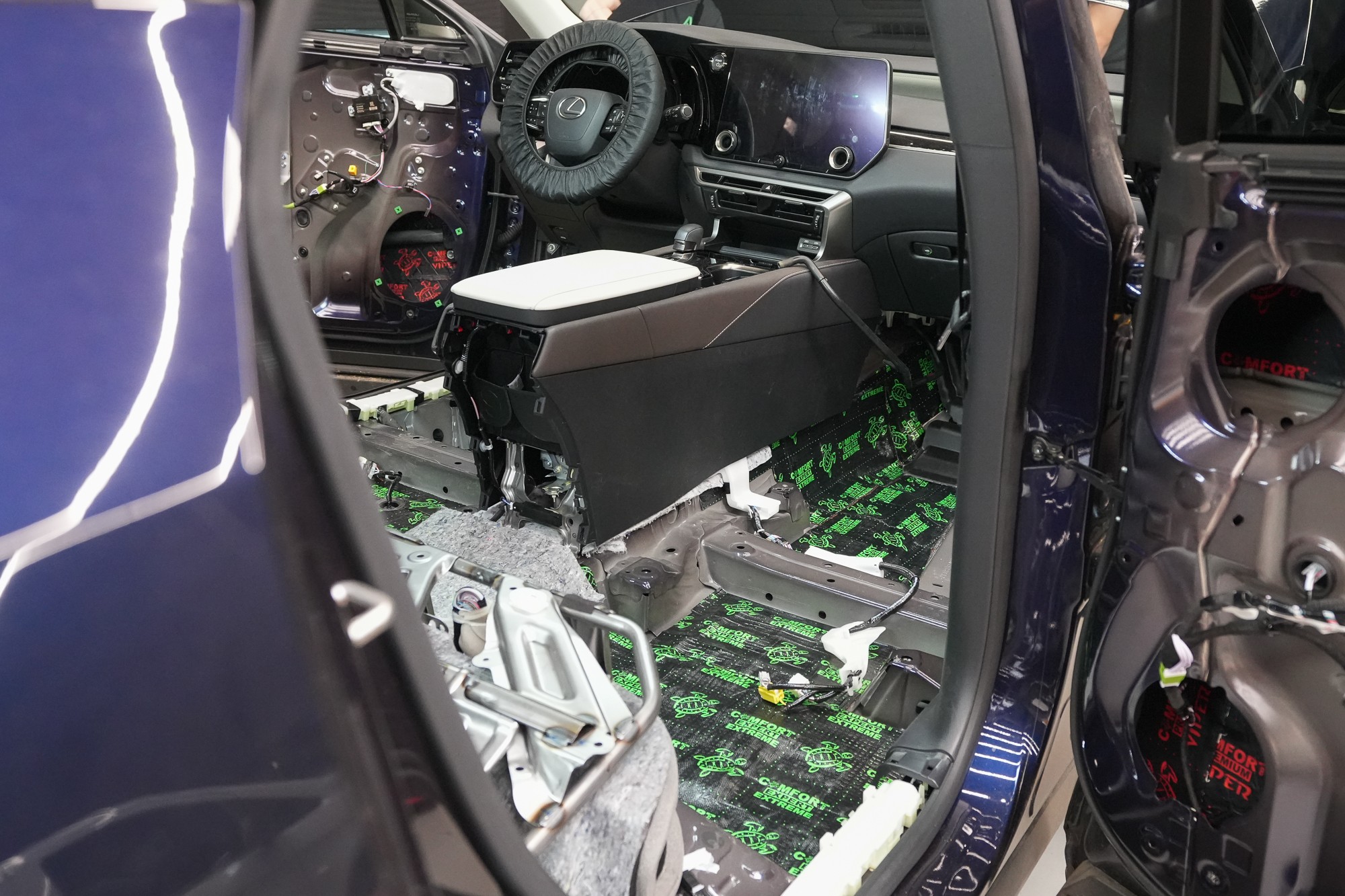 Инсталацията протече в рамките на един работен ден с участие на наш екип от четирима. След завършване промяната беше моментално забележима – интериорът е още по-тих и по-комфортен, което засилва премиум характера на автомобила Lexus. Според нашите измервания шумоизолацията води до намаление на шума в кабината с 3,5 до 4 dB, което отговаря на повече от двукратно затихване спрямо серийното състояние. Резултатът е по-спокойна и култивирана среда, която отговаря на философията на марката Lexus – перфектно съчетание на мощност, комфорт и тишина