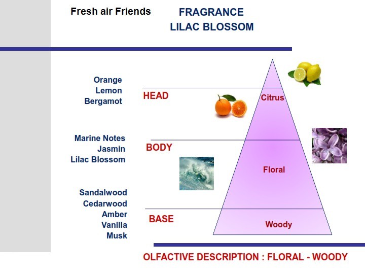 Cesare е освежител за въздух за автомобили, който съдържа агресивни молекули, които могат дълго време да се борят с коварните бактерии, които причиняват неприятни миризми. Ароматът на пролетта — зрели цитрусови плодове, цветни аромати и дървесни тонове с нежна нотка на ванилия, кехлибар и мускус. Ароматът Lilac Blossom (люляк) ще ви остави да мечтаете. Човечето Cesare от колекцията любими фигурки Fresh Air Friends на Mr&Mrs Fragrance е идеалният партньор за ароматизиране на интериора на вашия автомобил.Фигурка за вентилация Mr&Mrs Fragrance от серията CESARE