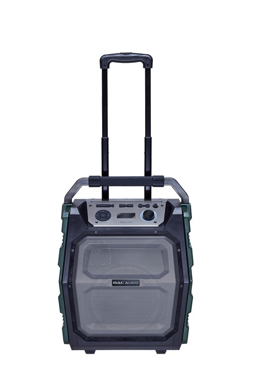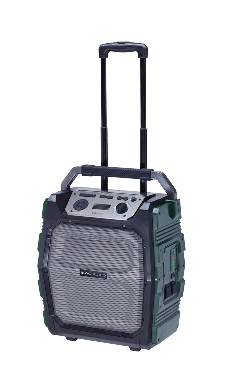 Mac Audio MRS 777 SOUNDSTATION се отличава с масивно външно изпълнение, с вградена телескопична дръжка и колелца, което му осигурява висока степен на мобилност. Акустичната мощност се дължи на големите размери на корпуса и неговия масивен обем. В комбинация с мощен 150W усилвател и 20,3 cm басов говорител, MRS 777 доставя впечатляващ, динамичен звук. Универсалните входни източници, включително Bluetooth, USB-A, USB-B с функция за зареждане, SD карта, AUX-IN, вход за микрофон и FM тунер, осигуряват висока гъвкавост. Освен това количката е оборудвана с висококапацитетна батерия с индикатор за зареждане, която осигурява 12 часа възпроизвеждане.