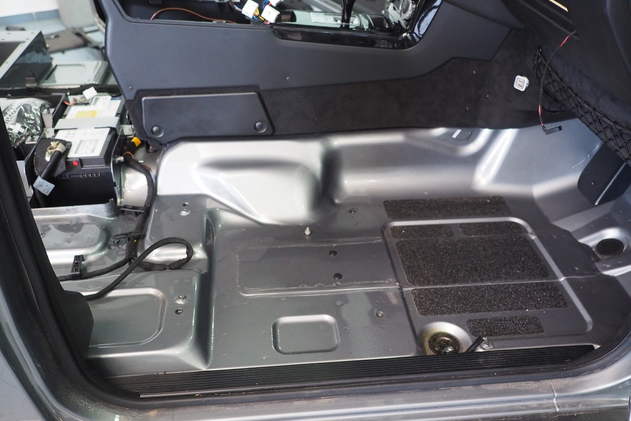 Много трудоемък монтаж на автомобил Mercedes-Benz G-Class, за който прекарахме общо 48 часа. Този автомобил, подобно на например Land Rover Defender, от завода няма никаква звукоизолация. Затова обезшумихме целия автомобил: всички врати, целия багажен/заден обем, пода, тавана и вътрешните арки. Дойде ред и на озвучаването. Инсталирахме звуково усъвършенствани говорители Rockford Fosgate от серията Power, които свързахме към първокласен усилвател Mosconi с DSP процесор. За басовата част отговаря нов субуфер на марката Kicker, който се захранва от моноблок Rockford Fosgate.