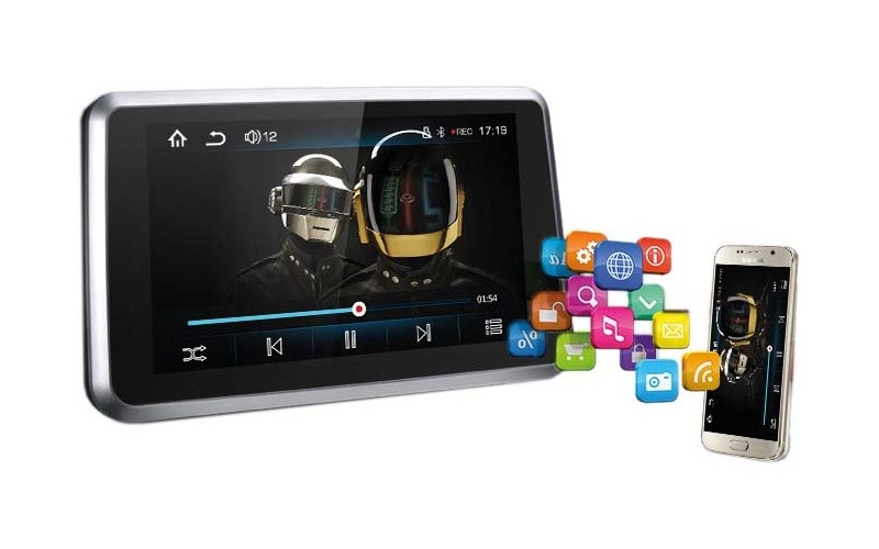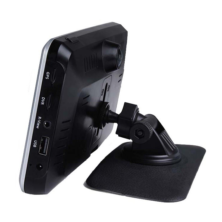 LCD монитор 7" с вградена FULL HD DVR камера в елегантен дизайн, предназначен за монтаж на таблото. Мониторът е оборудван с държач за лесно регулиране на позицията според таблото, DVR камера, функция mirror link и един видео вход (възможно е да се свърже камера за заден ход или всеки друг външен източник на композитен видеосигнал), вградена GPS навигация с възможност за реално изобразяване, HD мултимедиен плейър (възможност за възпроизвеждане на файл от micro SD карта или USB), вградена Bluetooth технология за телефонни разговори + възпроизвеждане на музика, FM модулятор + AUX изход за предаване на звук към радиото. Mirror link позволява предаване на всякакъв аудио/видео сигнал, например показване на навигация и др. от телефон с Android чрез data кабел на телефона.