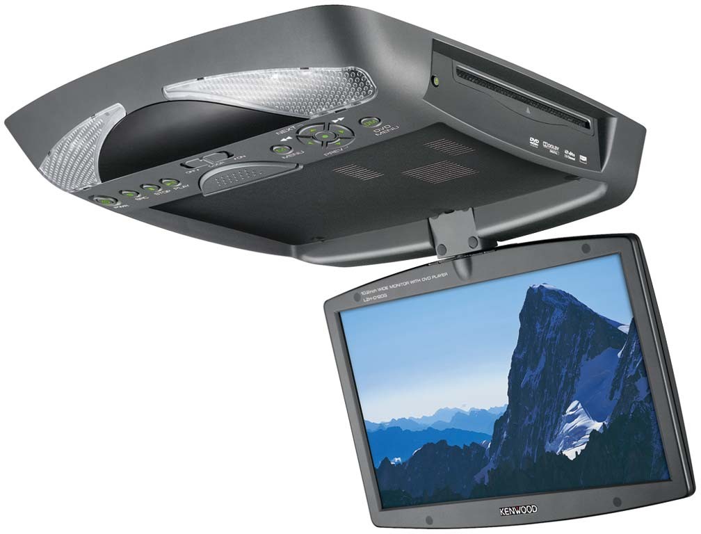10.2\" таванен монитор 2x A/V вход 1x A/V изход възпроизвежда DVD / VCD / DivX / MP3 вграден IR предавател за безжични слушалки вграден FM предавател вградени осветителни лампички дистанционно управление в комплекта монтажни материали в комплекта