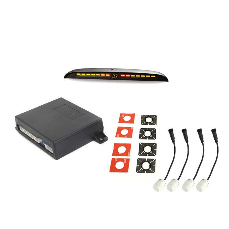 Паркинг асистент Steelmate с 4 вградени сензора в бял цвят (16 mm) и LED дисплей M8 с цифров двуцветен индикатор - предназначен за монтаж в задната броня на превозното средство. Дисплеят е предназначен за монтаж на таблото, на огледалото за обратно виждане или за монтаж на тавана (наблюдение чрез отражение в огледалото). Цифрите на дисплея се показват огледално, обърнати след настройка. Системата включва функция Antihook (игнориране на теглича на автомобила), автоматична идентификация на дефектен сензор и е допълнена с нови функции за настройка на чувствителността и обучителна функция. Комплектът съдържа 4 бр. паркинг сензора в бял цвят, управляващ блок, дисплей и кабелировка. Захранващо напрежение 12V.