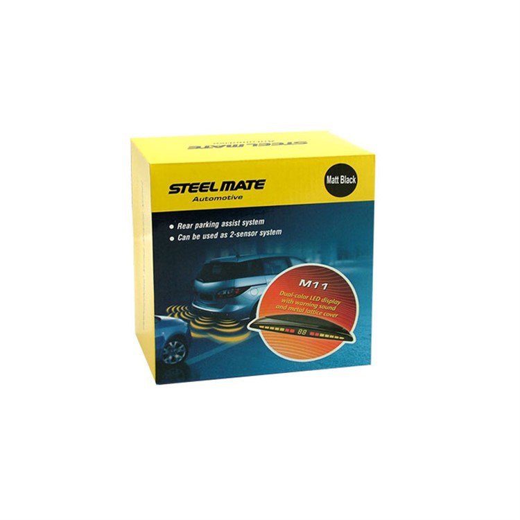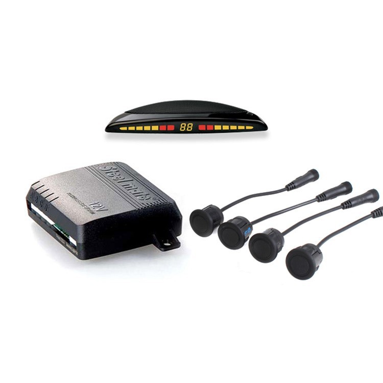 Parkovací asistent STEELMATE se 4 snímači a LED displejem M11 s číselným ukazatelem a zvukovou signalizaci určený pro instalaci do zadního nárazníku vozidla.
