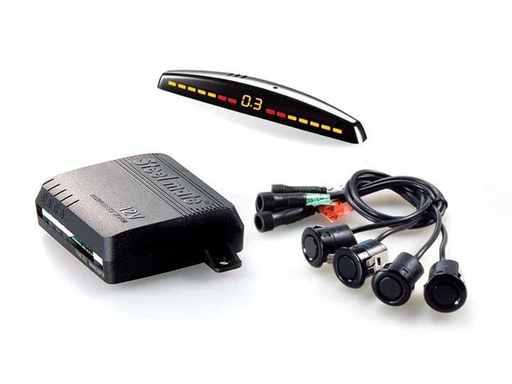 Парктроник STEELMATE с 4 сензора и LED дисплей M7 с двуцветен цифров индикатор, предназначен за монтаж в задната броня на автомобила. Дисплеят е предназначен за монтаж на таблото, на вътрешното огледало или за таванен монтаж (наблюдение чрез отражение в вътрешното огледало).