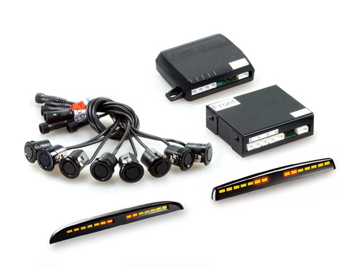 паркинг сензори 8 бр., LED дисплей M6, LED дисплей M5, контролен блок, кабели, свредло, упътване, гаранционна карта