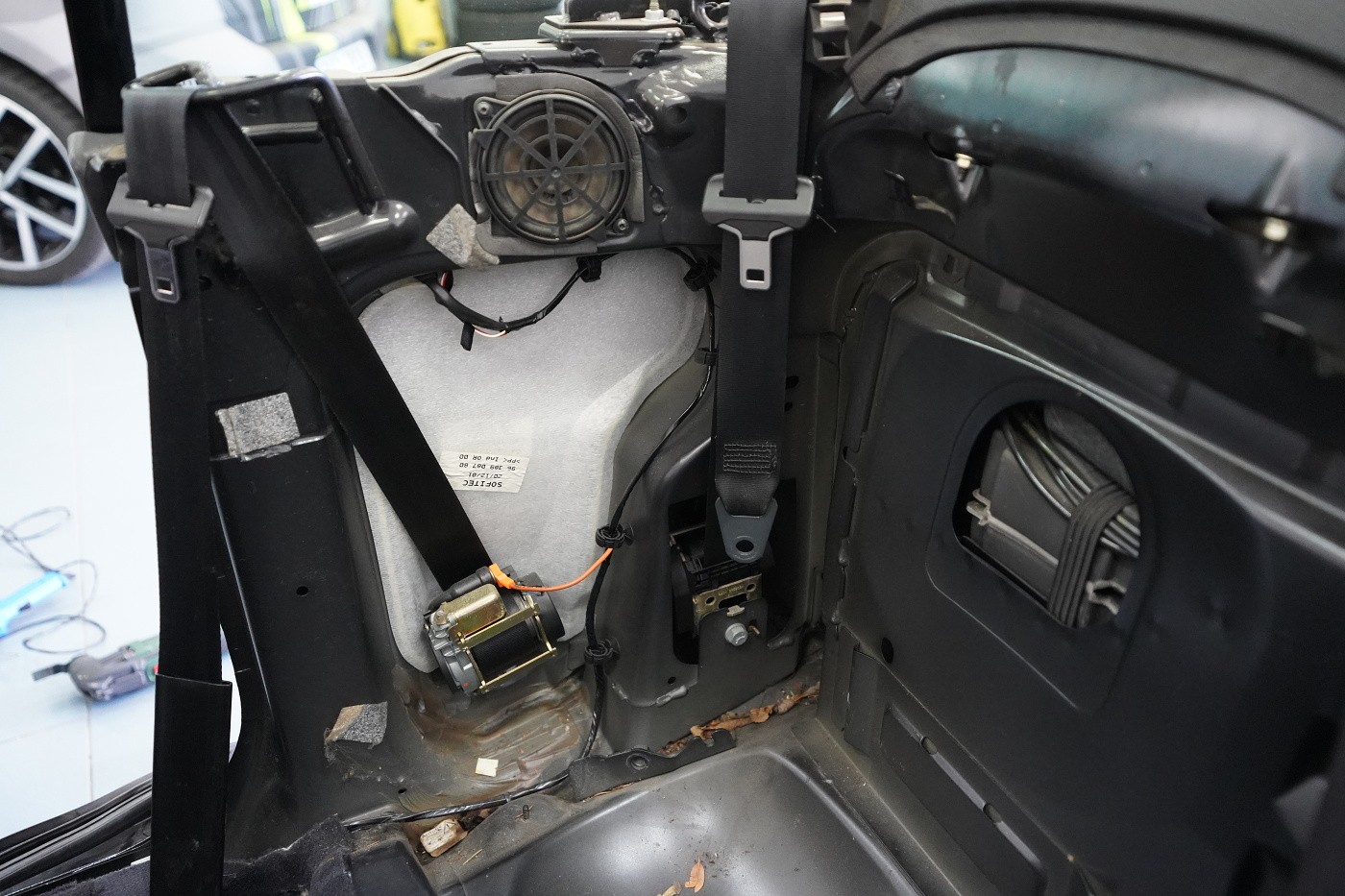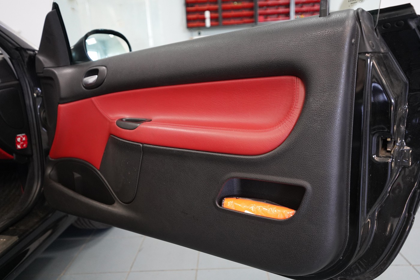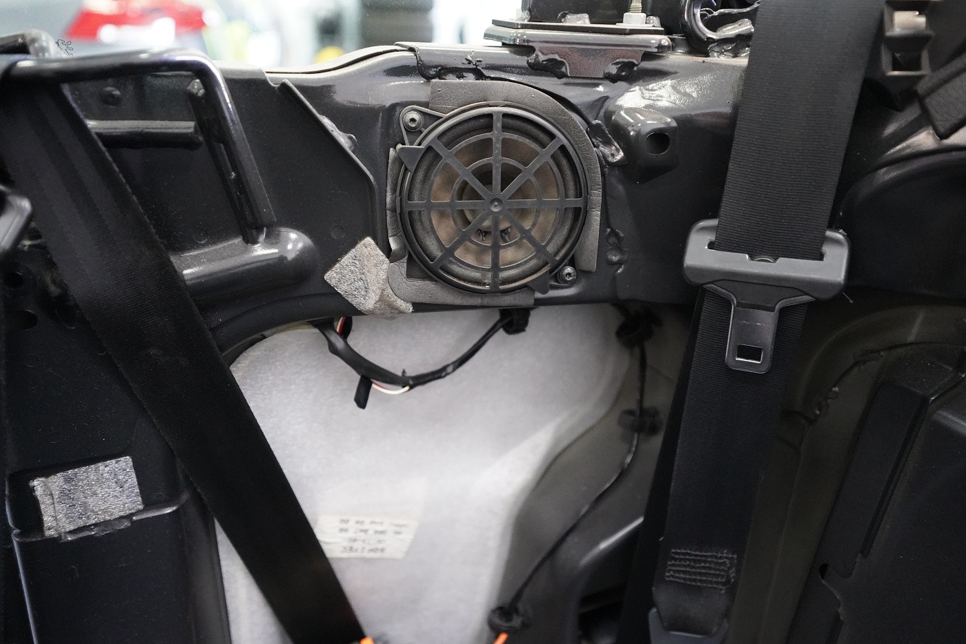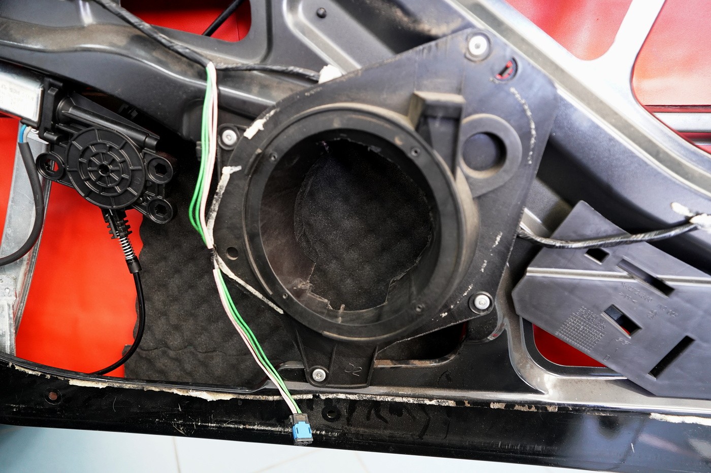 Монтаж на автордио и говорители в Peugeot 206 CC. За тази монтажна работа избрахме комплект говорители Hertz, конкретно популярните компонентни Hertz CK 165 за предните врати и коаксиите от серията Dieci за задното пространство. Нов източник на музика за автомобила е безмеханичното автордио Kenwood. За да изцедим максимума от говорителите, беше необходимо да демпфираме добре вратите, които в този модел са необичайно прорязани. Първо демпфираме външния метал с премиум антивибрационния материал Comfortmat Dark D2. Следва ултралек шумопоглъщащ материал Comfortmat Vision, който много ефективно шумоизолира вратите с минимално увеличение на теглото. Зад говорителя залепваме акустичния материал Comfortmat Tsunami, който ще предотврати стоящи вълни зад говорителя и значително ще подобри звученето на среднобасовия говорител. Последната фаза е затварянето на вратата с още един слой антивибрационен материал Comfortmat Dark D2, което не само предотвратява вибрациите на вътрешния метал, но и особено подобрява басовата част на говорителите. Това осигурява много по-голяма динамика и способност да възпроизведат ниски честоти, тъй като за говорителите сме създали затворена акустична кутия. Благодарение на изключителната чувствителност на избраните говорители и сравнително високата мощност на автордиото Kenwood, говорителите Hertz сега могат да възпроизведат много динамичен и без изкривяване звук дори при високи нива на звука.