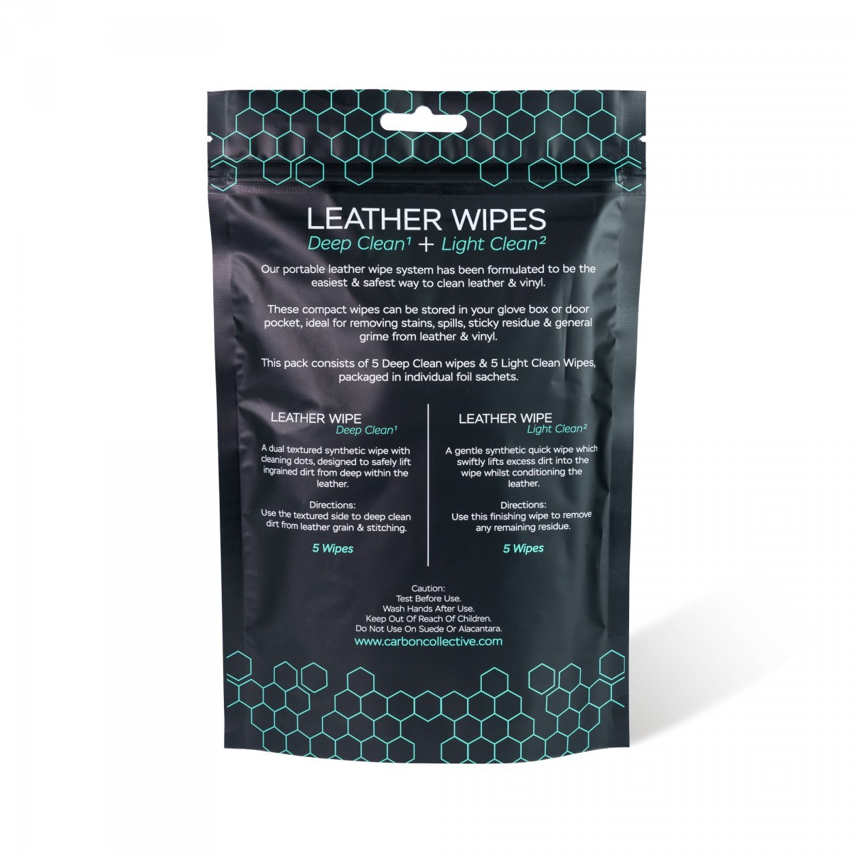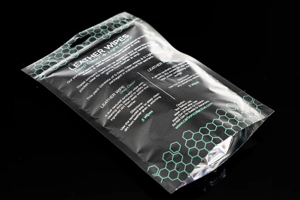 Революционните кърпи за кожа от Carbon Collective имат две нива на почистване - дълбоко почистване и леко почистване. Този преносим комплект влажни кърпи е проектиран така, че почистването на кожа и винил да бъде най-лесно и същевременно най-безопасно. Кърпите могат да се съхраняват в жабката на таблото или в вратата, така че да са винаги под ръка. Идеални за премахване на петна, лепкави остатъци и общи замърсявания от кожа и винил. Опаковката се състои от 5 кърпи за дълбоко почистване и 5 много меки почистващи кърпи, всяка опакована в отделен плик. Препоръчваме за текущо почистване на волана и скоростния лост, които са покрити с кожа и са най-податливи на замърсяване. Подходящи са, когато превозното средство се използва от няколко водачи.Основни характеристики