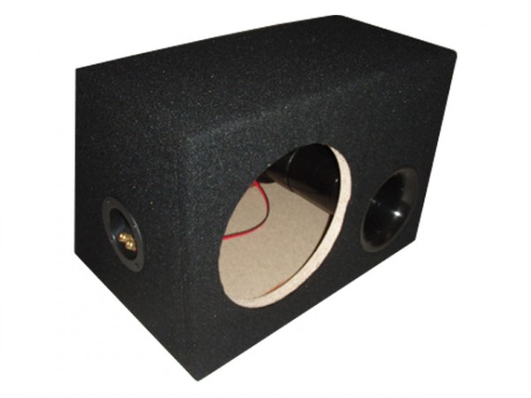 Кутията е облицована с черно килимче, оборудвана с басрефлексен накрайник, терминал за свързване и високоговорителен двужилен кабел.
