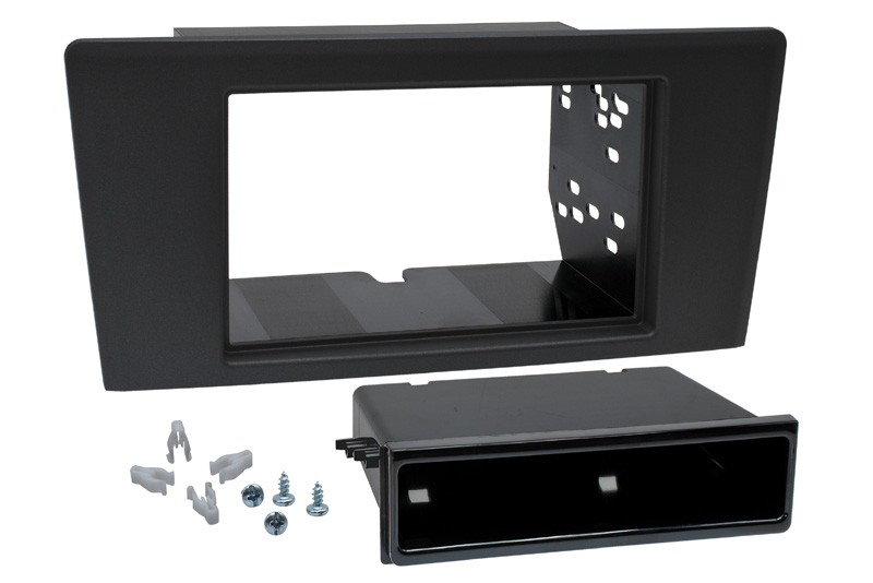 - опаковката съдържа: пластмасов адаптер, вътрешна пластмасова рамка за захващане на радио, 1DIN кутия за инсталиране на 1DIN радио, скоби, винтове, инструкция за монтаж