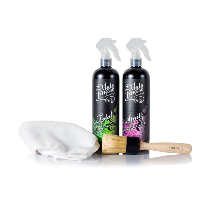 Наистина специализиран универсален почистващ препарат Auto Finesse Total е пригоден да се справи с високи изисквания, било то при почистване на пластмаси, винил, гума, текстил или килими. Total е ефективен при премахване на петна от пот, масло, кремове, кафе, трева, кал, храна и кръв. Total е усъвършенстван, слабо пенещ се продукт с активни съставки, които не разочароват. Той предлага балансирана комбинация от безопасност и почистваща мощ, която не може да се постигне при грубо третиране с универсален уред. Total също съдържа оптически избистрители и кондициониращи агенти. Това позволява почистване и освежаване дори на най-деликатните и чувствителни части от интериора на автомобила. Така можете да почиствате тапицерията без страх от избледняване.
