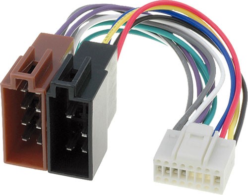 Kabelové svazky pro autorádia Sanyo se specifickým konektorem na straně autorádia a ISO konektorem na straně automobilu. Délka vodičů bývá obvykle 12-13 cm. Kabely jsou navíc barevně označené a s popisem.