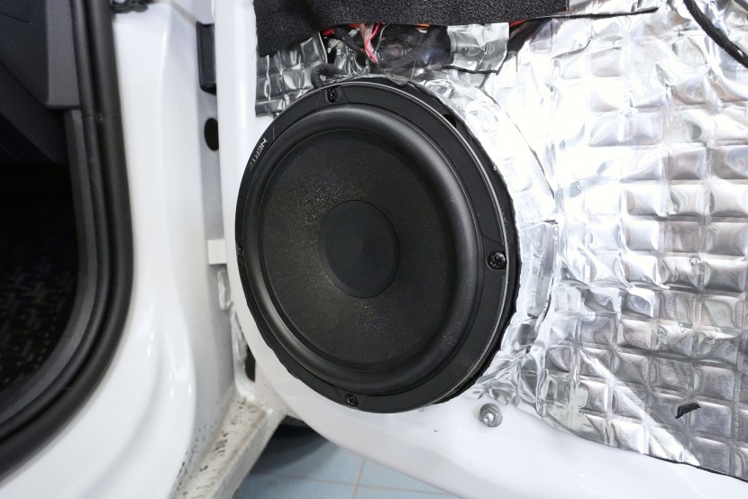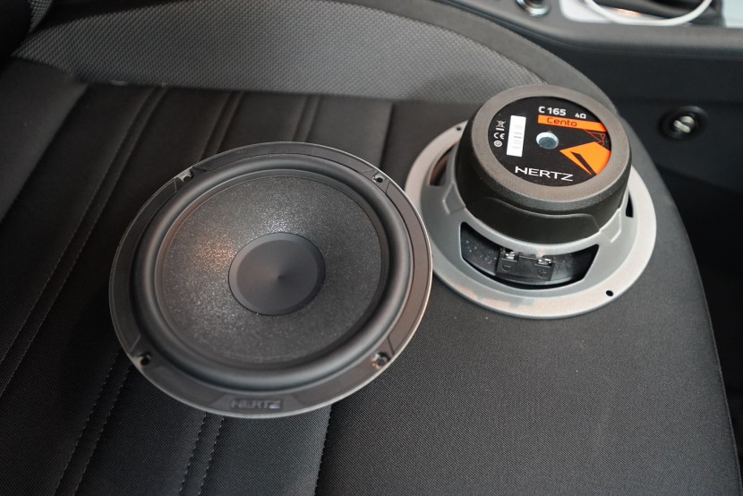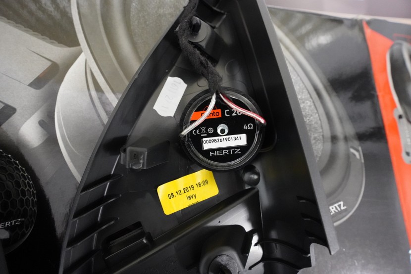 Смяна на предните високоговорители в автомобил Škoda Octavia от 3-то поколение. Избрахме нашите най-често монтирани в сервиза високоговорители Hertz CK 165, които в съответния ценови клас се отличават с много надстандартно звучене и особено с изключително висока чувствителност. Това позволява безпроблемно свързване към фабричното радио, което доставя на новите високоговорители достатъчна мощност. Високоговорителите Hertz CK 165 разполагат и с изразена басова линия, която допълнително се усилва от звукоизолацията на вратите.