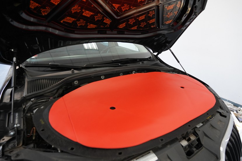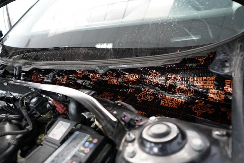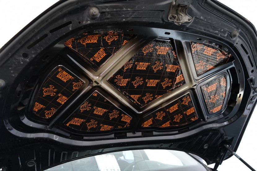 Капакът шумоизолираме в два слоя - антивибрационен материал Comfortmat Dark D2 на метала на капака и след това шумоизолационния материал Comfortmat Vision. Той нанасяме върху вътрешната страна на фабричната капачка на капака, която връщаме обратно на място и по този начин запазваме оригиналния вид.