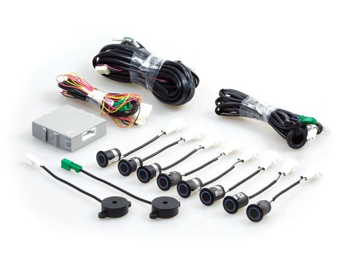 паркинг сензори 8 бр., контролен блок, 2 бр. зумери, кабели, свредло, упътване, гаранционна карта
