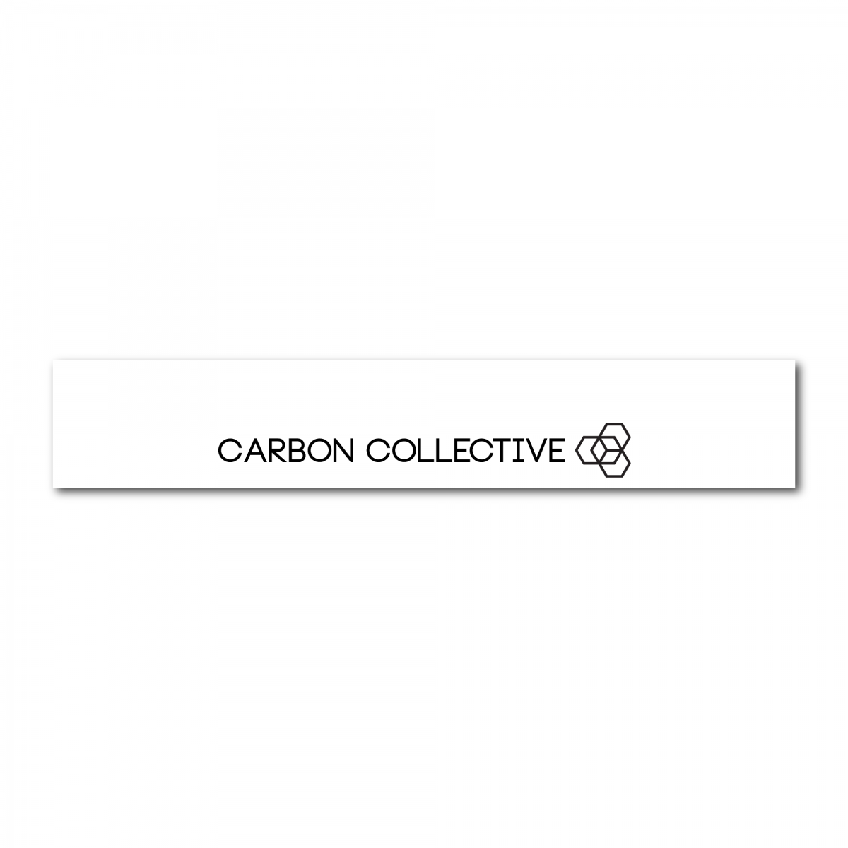 Рязан стикер Carbon Collective във фино винилово изпълнение за външна употреба. Ширина 1400 mm, височина 200 mm, височината на логото е 90 mm. Изработен от петгодишно винилово фолио. Универсално приложение. Бяло гланцово изпълнение.