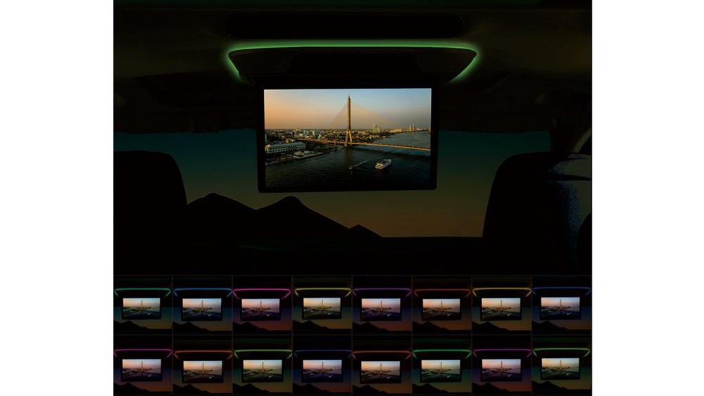 Качествен плосък таванен сгъваем LED LCD монитор 21,5" с OS Android, HDMI вход, четец за USB с изображение 16:9, декоративно осветление (multicolor). Към монитора може да се свърже произволен външен източник на композитен видео сигнал (например DVD, видео, камера ....) + HDMI вход. Мониторът е за удобно управление оборудван с дистанционно управление със сензор за движение.