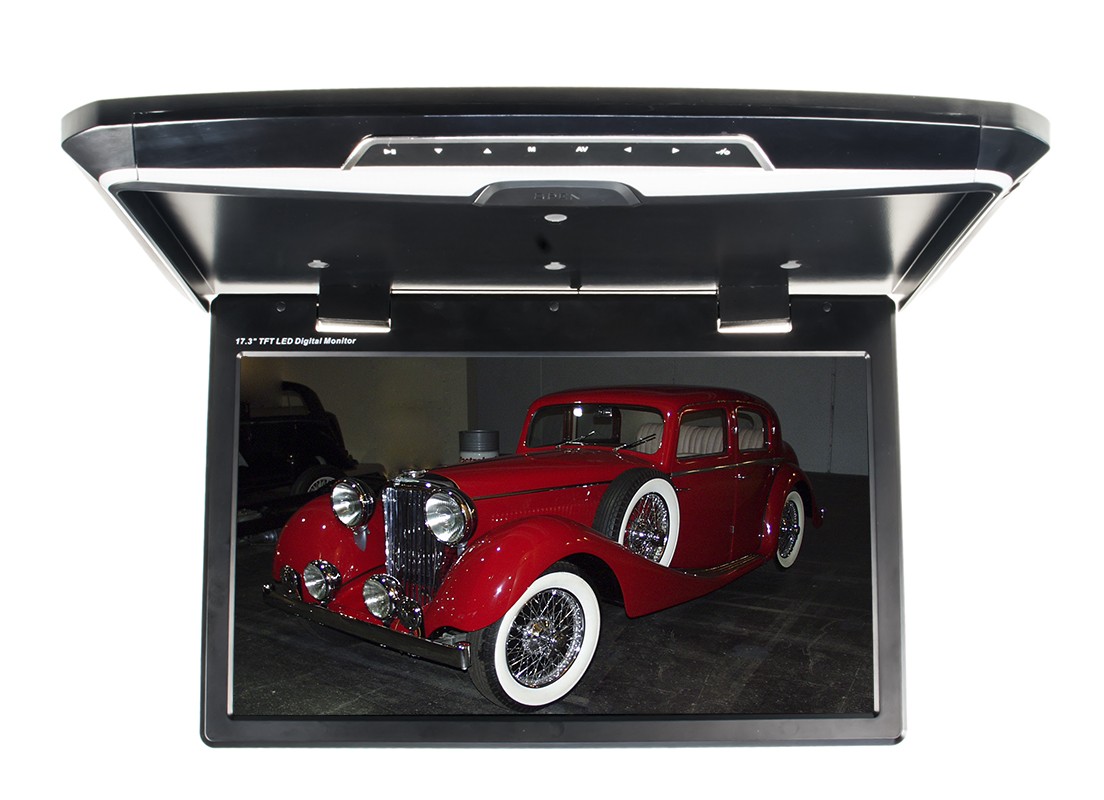exkluzivно тънък таванен отварящ се LED LCD монитор 17,3\" с HDMI вход, четец за USB/SD карти, с изображение 16:9.