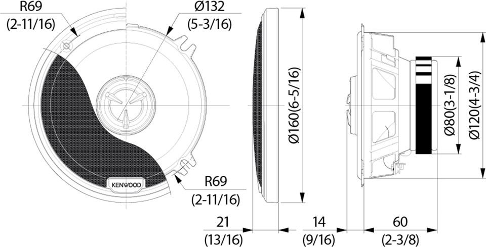 40 W RMS, 87 dB (SPL 1W/1m), 4 Ω, монтажна дълбочина на говорителя 60 mm